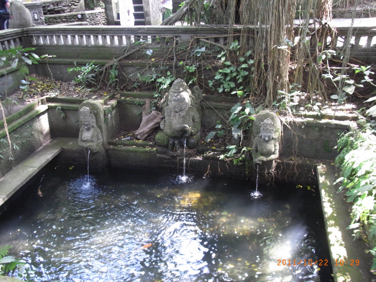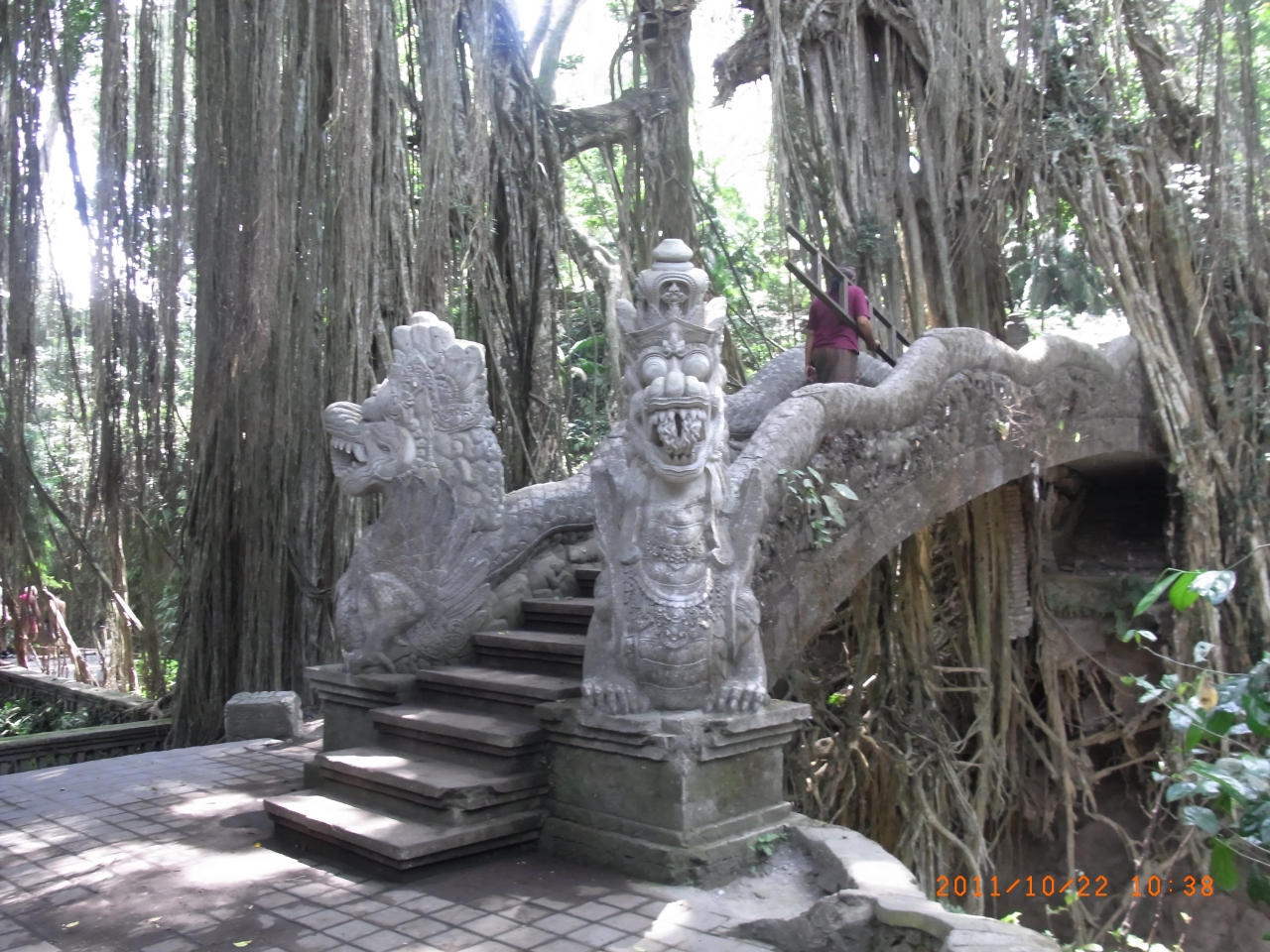 バリ島、ウブドに位置するサルの王国。一見かわいくみえるが、意外と攻撃的でよく観光客の持ち物をひったくくる事件が多発している。よって彼らには近寄らずに園内の風景や雰囲気を楽しむこととしましょう。意外と広いですし、気持ちいいですよ。