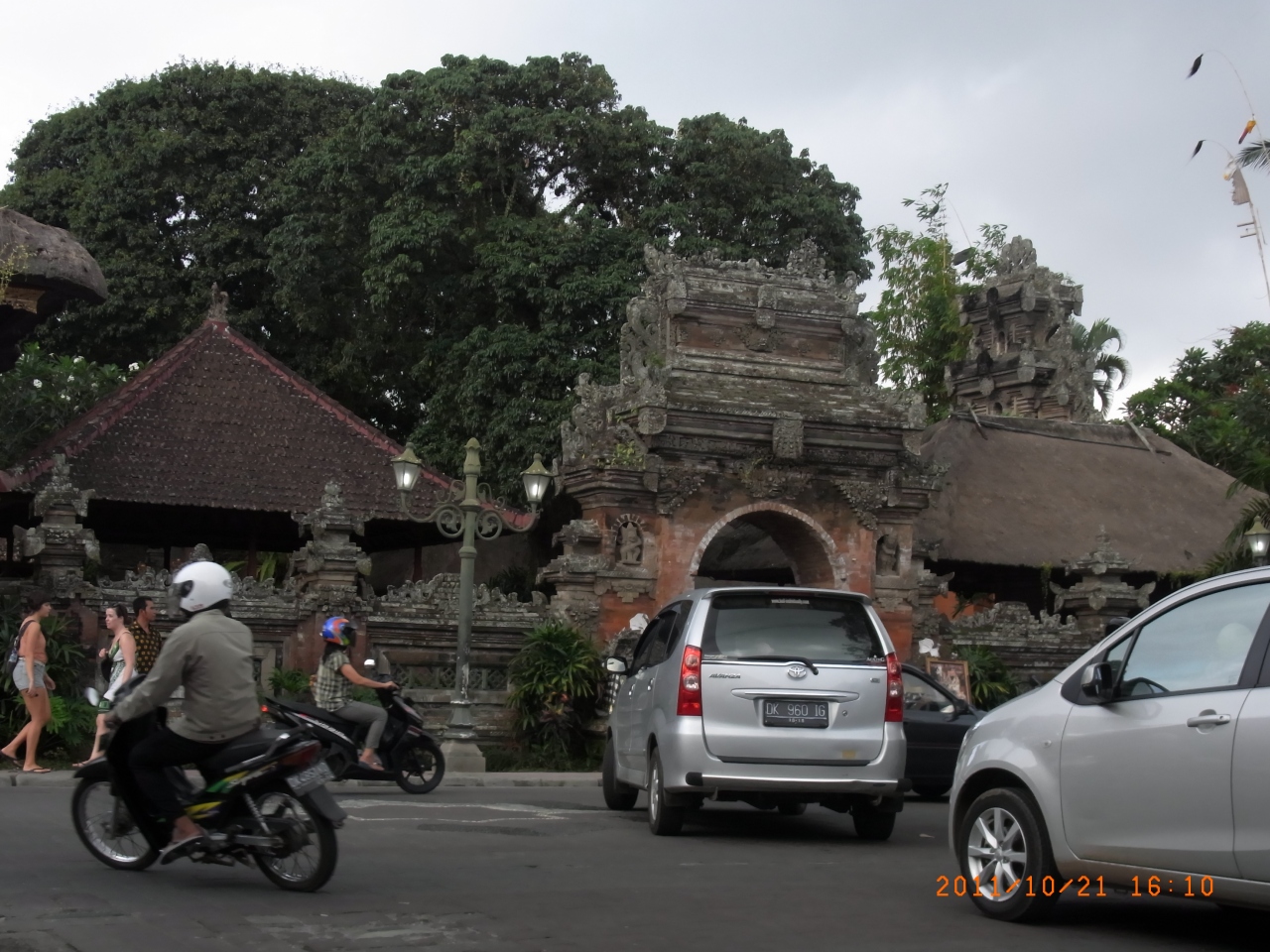 ウブドの中心、モンキーフォレスト通り、北へ伸びるスウェタ通りが交差するところにあります。赤レンガ風の門が目印になります。入場は無料。多くの観光客でごった返しています。宮殿の中へは入れませんので必然的にみるべきところは限られてきます。