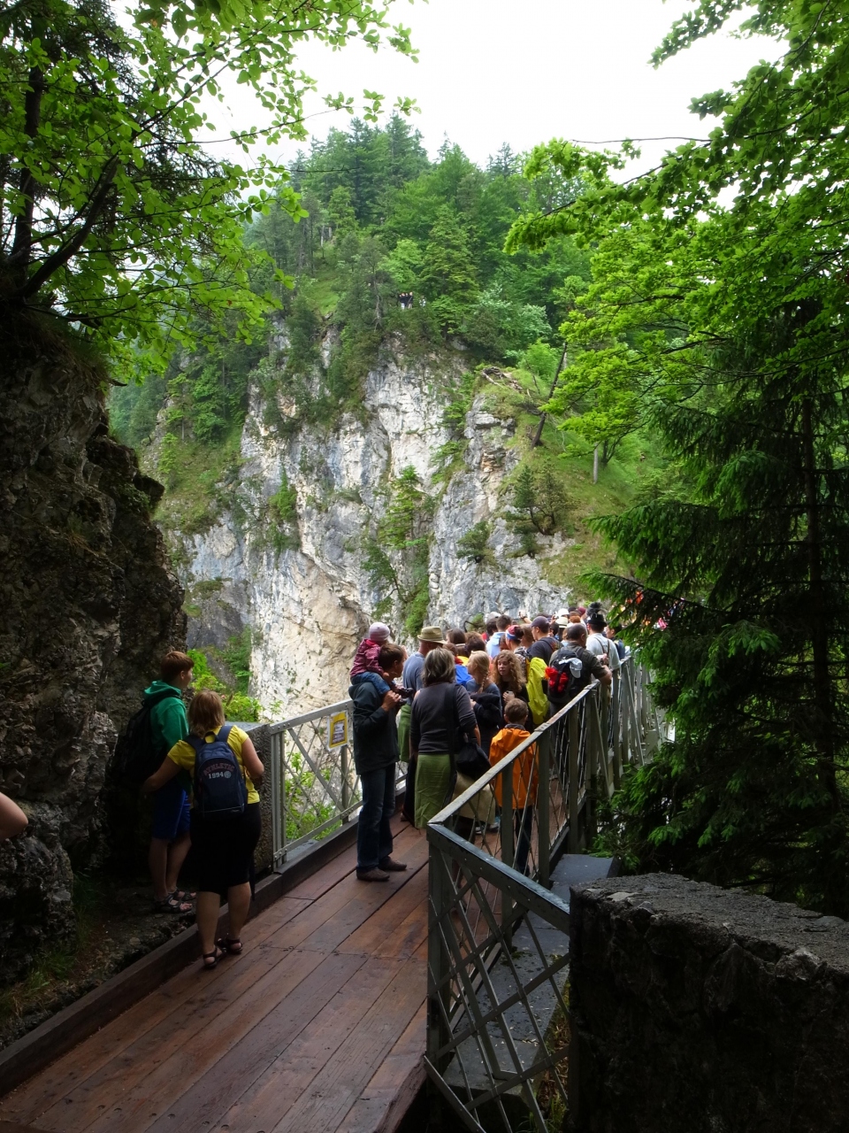 ノイシュバンシュタイン城の全景を写真に収めたい場合はこちらのマリオン橋まで行かなくてはなりません。お城自体からは離れているので、個人旅行で凝られている方はご注意を。橋は木造の簡単な作りになっていますが、団体客が大挙して押し掛けると果たして大丈夫なのか?と少し不安になります。高所恐怖症のかたもご注意ください。