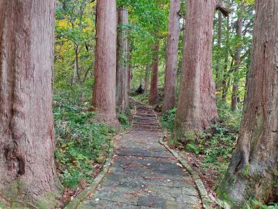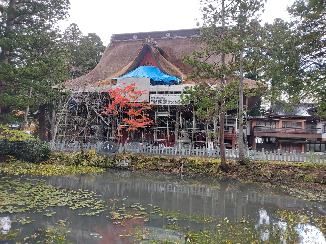 羽黒山・月山・湯殿山の神を一箇所でお祀りする、ということで三神合祭ということのようですね。瓦葺屋根が特徴的な社殿ですが、2020年10月に訪問したときには補修工事中でした。また隣の博物館はコロナ影響で閉館中と、せっかく来たのにちょっと残念でした。