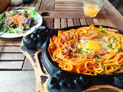 那覇市内でレベルの高い飲食店が軒を連ねる久茂地。こちらにおしゃれな洋食屋がありました。東京にあってもおかしくないような内装です。こちららランチでお邪魔しました。メインはナポリタンで、焼きたての熱々で美味しかったです。