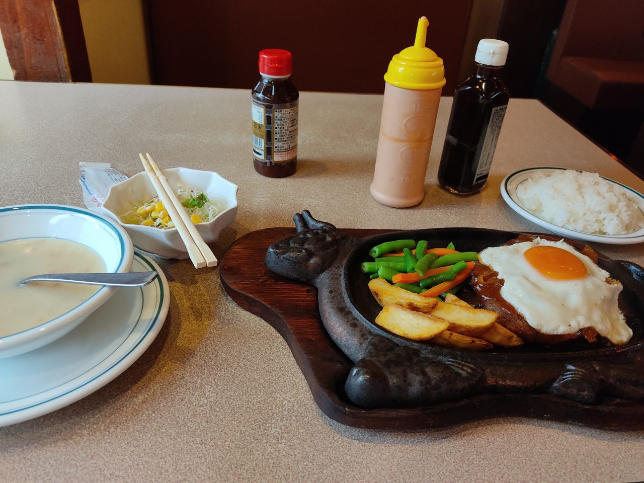サムズと並んで那覇では老舗の部類に入るステーキハウス。沖縄レストランによく見かけるアメリカンダイナー的な雰囲気があるお店が好きです。ノスタルジーを感じる。ハンバーグ・ステーキは値段の割にはボリュームあってとっても良かったです。