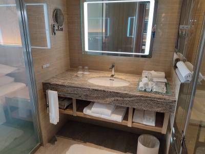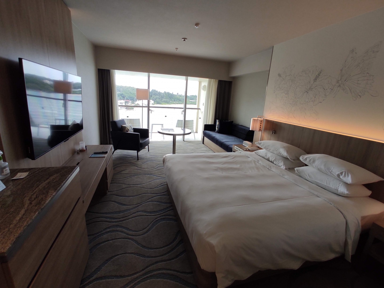2020年リニューアルオープン下とのことで試しに宿泊してみた。スーペリア→デラックスへ微妙なアップグレード。基本的に部屋の広さは変わらず、階層が上がるのみ。ただ静かな真栄田岬側でキングベットなのは良かった。さてgotoもあってか平日月曜宿泊なのにすごい混みようだ。しかもみんなclub savvyで宿泊しているみたいw 自分のようなソロトラベラーには場違い感がすごい。ま、あんま気にしないが。でかいホテルだけあって移動はいちいちめんどくさい。エレベーターも朝夕の混雑時は超満員、各駅停車でストレスフル。更にホテル内エレベーター工事していてやかましい。(休館時&緊急事態宣言時になぜやらなかった?!)レストランは4つあるが一番良さそうなところは混雑激しく朝食も20分待ちと待つ気にもならない。イルカや亀、鳥類を間近でみられるのは良い。11階のラウンジスタッフ中心に対応は良好。お部屋にブルーツゥーススピーカーがあるのは良い。全体的に良いホテルだと思うが、やっぱり連泊してマリンスポーツを楽しむ家族層のためのホテルなので静かにゆっくりしたいホテルではない。値段もたかいしね。