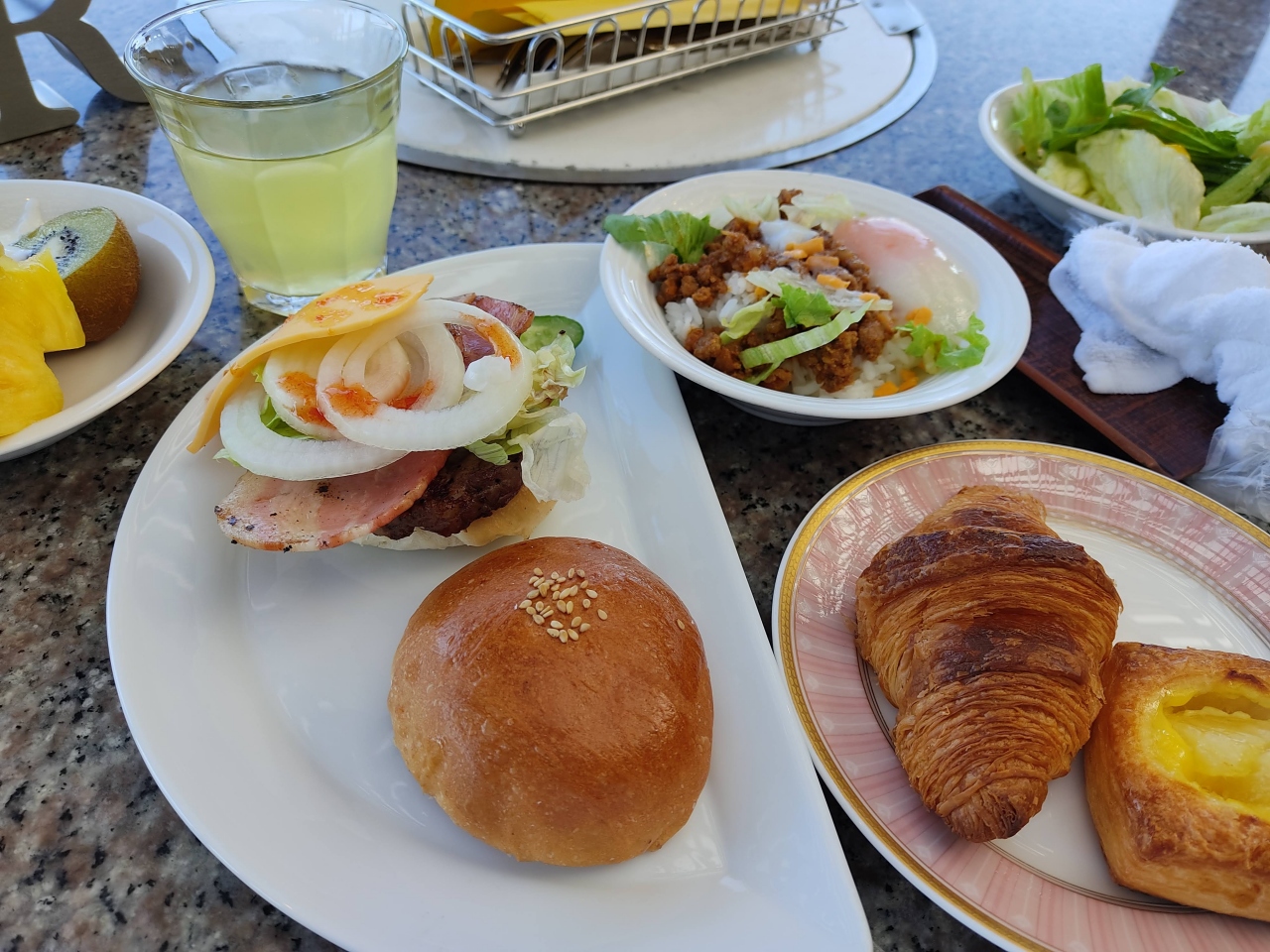 ルネッサンスリゾートオキナワ内にあるカリブ海風レストラン。朝食で利用しました。ルネッサンス内には4つ朝食会場があります。ほかの3つは結構混雑するがこちらは外に出るのが手間だからか、結構ガラガラでした。ただしタコスやハンバーガー、ホットドックなどその場で作ってくれるので悪いというわけではないです。景色もよいですし。