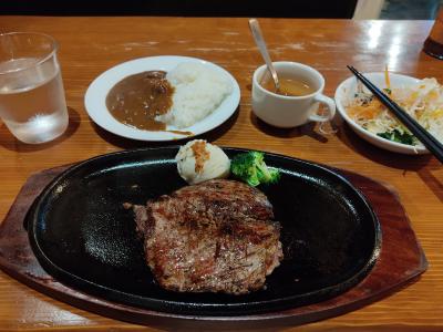 沖縄のステーキ屋のコスパは異常です。こちらステーキが1650円〜ラインナップがあり、これに400円上乗せするとサラダバー、ライス、カレー、ドリンクなどが付きますがどれもおいちい。シークヮーサージュースが美味しくてつい5杯ぐらい飲んでしまった。全くおそろしい。