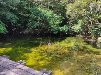 こちらのキャンプ場の近くにヤマシシコースの入り口があります。片道1キロぐらいで、初心者でも気軽にトレッキング出来ます。終着点には小さめの池(タビーポンド)があってリケンイモリやおたまじゃくしがたくさんいました。