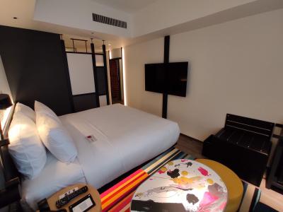 オープン記念価格で試しに宿泊。コートヤード銀座東武→ACホテル→アロフト、と1泊ずつ泊まってみたw まずチタニウム会員を持ってしてもアップグレード無しは大いにテンション下がった。一切のアップグレードなし。これは初めての経験。平日宿泊なので空きはあるはずだが。駄々こねるのも大人げないので言わなかったけど。よそのホテルでは満室なのにアップグレードしてもらって恐縮したこともあるのにw デザインはアロフトらしさがある。アロフト自体は海外で嫌というほど泊まってきたのでサプライズ、新鮮味はない。どうせならロボットのバトラーを用意するとか、最新テクノロジーを活用した遊びがあったら良かったのに。。。アロフトキングは想像通りの狭い部屋。ACホテルの30平米から移ってきたのでよけい狭く感じる。机がないのは痛い。フロントスタッフもそっけなく必要な説明もなく、海外のアロフトで見るようなフレンドリーさも無し。唯一2階レストランのスタッフは丁寧で一生懸命だった。月曜宿泊だが、ルーフトップバーが定休なのを知って更に落胆。楽しみにしてたのに。結論としてはサービス、ホスピタリティ、アメニティ全てが隣のACホテルに大きく劣る。プラチナ以上の特典も手薄なので通常価格(2〜3万)で宿泊するのはないと思う。きちんと改善点を見つけて確り改善していってほしい。以上、期待値が高かっただけに辛口コメントです。