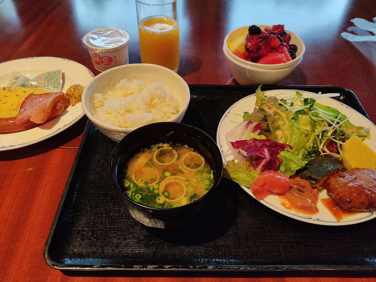 シェラトン併設のレストランで朝食会場になっています。コロナ禍の今にあってもちゃんとビュッフェ形式でも朝食でした。マスクとビニール手袋必須となります。接客はとて丁寧だと感じます。宮崎の地のもの(マンゴーとか)を使った料理を期待しましたが、あまりそういうのはなかったです。