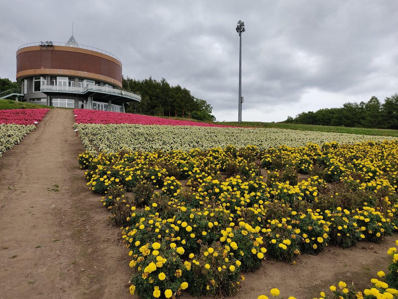 ちょうど花が満開を迎えた頃に訪問しました。市民の有志でメンテされている花畑のようです。入場は無料です。ちょうど網走の観光バスの終着点なので網走監獄に行くついでに立ち寄ってみると良いでしょう。正面の展望台は残念ながら閉鎖中だった。