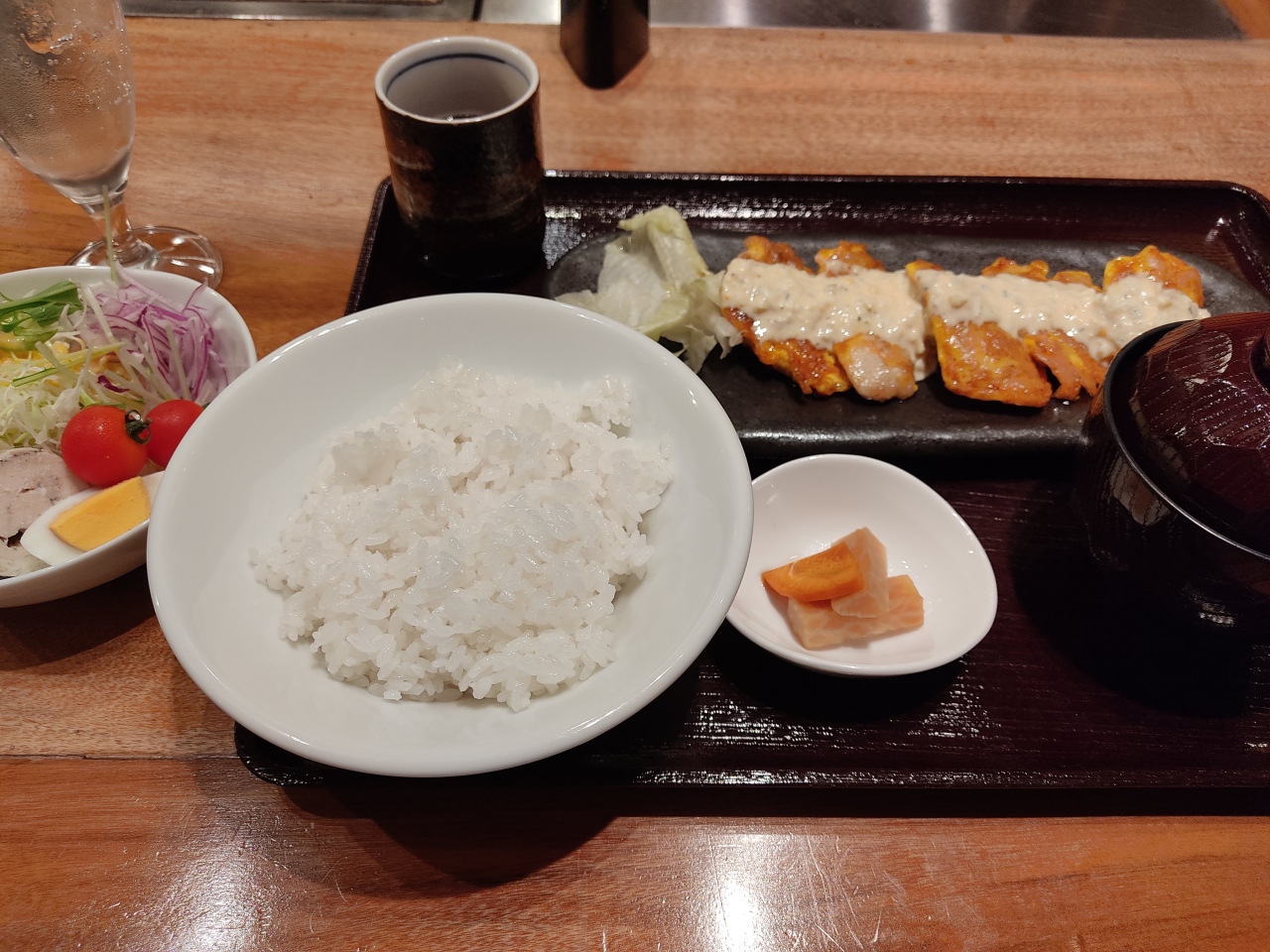 宮崎駅構内のレストラン。宮崎牛の鉄板焼のお店ですが、ランチでは宮崎名物チキン南蛮の鉄板焼もやっています。目の前の鉄板で焼いてくれました。おまけでカクテル一杯もついてきます。上品なチキン南蛮でした。ご飯がとてもうまい。店も高級感あって良い。