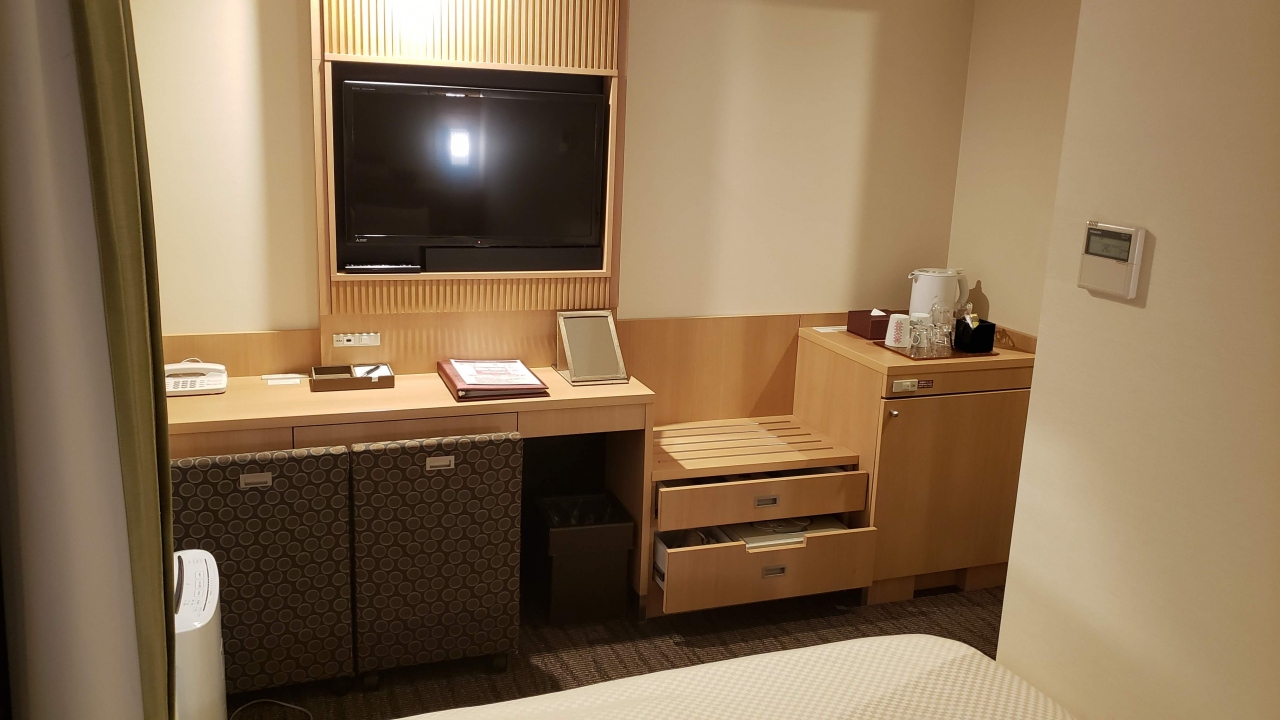 五条駅近くのビジネスホテル。京都駅からは約1.1キロなので歩いてはアクセス可能な距離。烏丸や祇園までは歩くのはしんどい印象。建物の内側の部屋は眺望がほぼない分格安で泊まれる。大浴場やサウナもついているので快適。部屋は狭いけど間取りがイイ感じで快適であった。なによりラウンジの無料ドリングが非常に充実していて気に入った。山ぶどうカルピスばかり飲んでしまった。自転車も2時間まで無料で借りられる。