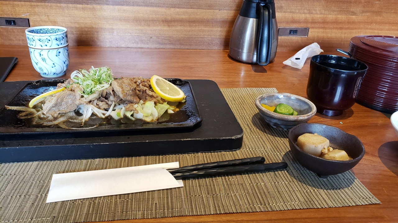 姫路駅北東のアーケード街の入口にあった。夜9時でほかの店が軒並み閉まっている中で空いていて助かった。でも結構な数の定食、どんぶりが品切れであった。普通のとんかつ定食を注文。税込みで千円ぐらい。キャベツが多いのが良かった。