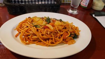 NAMBAなんなんの地下街にあるお店。あんまり関東では見かけず、大阪ミナミらしいメニューなので行ってみた。ナポリタンは580円でその場で焼いてくれるので出来立てジューシー。通常のナポリタンより1.5倍ボリューミーなのでこれだけでもお腹いっぱいになる。