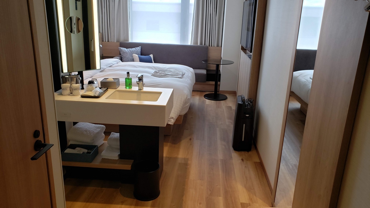 道頓堀のすぐ近くのにぎやかな通りにあります。夜は客引きも多く、騒がしいですね。今回1泊6千円で泊まりましたが、周りのホテルの値段が下がりすぎているため、相対的に割高感がある。まあ今までのインバウンド価格が狂っていたのだろう。お部屋は広々20平米でちゃんとデスクあり、使いやすかった。クラウンプラザ感ありますね。また12時前にチェックインしたけど快く部屋も使わせてもらってよかった。