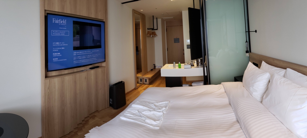 2020年7月からいよいよオープンしたフェアフィールド難波。オープニング記念で1泊8700円だったので行ってみた。全体的に木の温かみが感じられるモダンテイストのスタイル。モクシ―とかACホテルにコンセプトが似ていて華美さよりの機能性を重視。バスタブはついてない。部屋んお広さは全室同じ。プラチナ会員以上はコワーキングスペース(ラウンジ)が使える。(~21時まで)部屋にはデスクはないがこちらを使えばいいのでノマドワーカーでも違和感ない。南海難波駅からは距離があるのでアクセスはいまいちかな。ビジネス用途のお客を意識していてその用途ではありかと思う。部屋にブルートゥーススピーカー(JBL Flip5)がありパソコンにつないで高音質の音楽が聴ける。これがイイ。朝食はBOXだった。全体として気持ちい滞在になった!