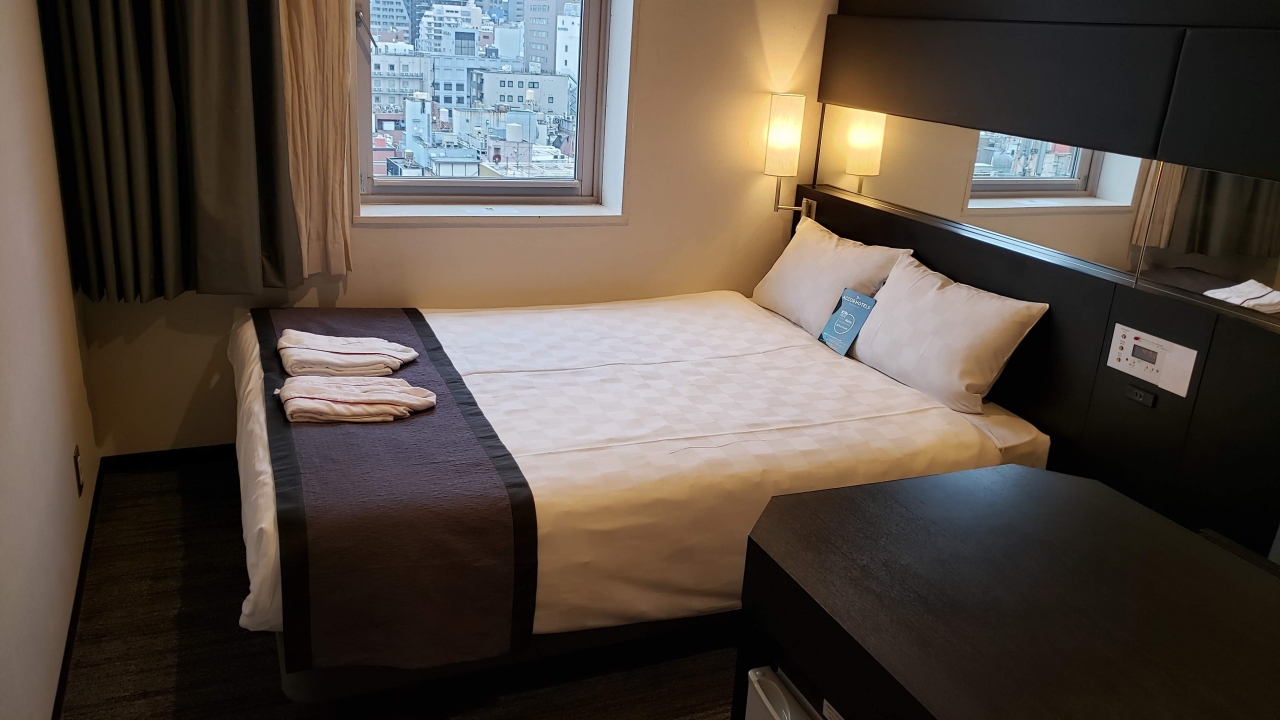 日本橋駅近くのドーミーイングループホテル。この系列ブランドが好きで、こちらで3店舗目の宿泊です。高級感あってお部屋が広かったのが良いですがエアコンが臭かったのとwifiが微弱すぎるのが難点でした。あっと立地上しょうがないが、騒がしい客が多いのも浅草店と比べるとちょっと。。