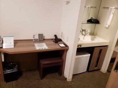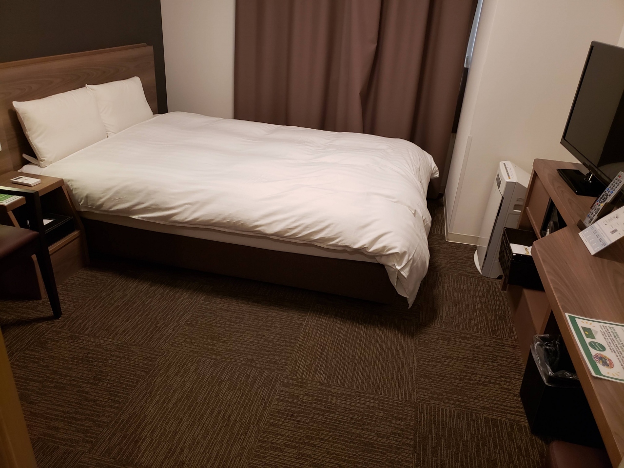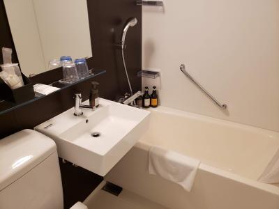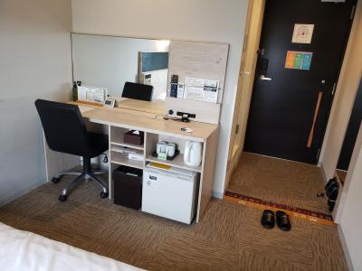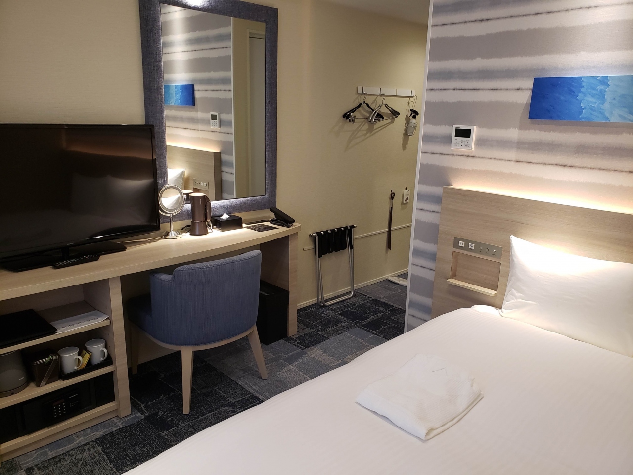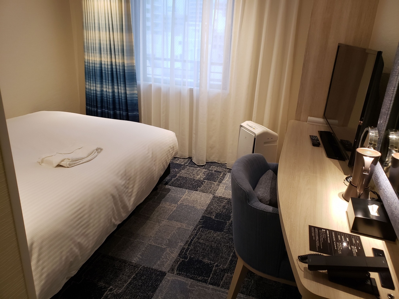 旭橋駅から徒歩10分程度に位置するホテル。まだできて半年といったところでキレイです。お部屋は普通のビジネスホテルより気持ち広めで、一番小さいエコノミーダブルでも15平米は確保できる。内装が凝っていて2種類のデザインがある。自分が止まった部屋はインディゴというものだった。wifiが遅いのが難点だけど、部屋着がセパレートだったり快適に過ごせました。非常にお勧め。
