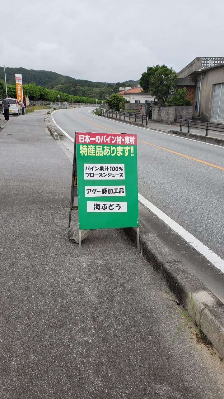やんばるの東側、東村のある唯一(と思われる)物産販売所。東村はパイナップル栽培が盛んらしく、たくさん売っていた。一個300円~とお安い。こちらの一押しはフローズンパイナップル。(200円)砂糖不使用なのに甘くてパイナップル感がすごかった!!ここ以外では売ってないと思われるのでまたリピートしたいな。