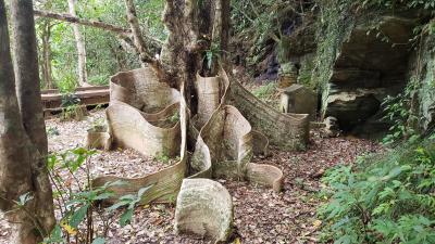 東村にある、天然記念物に指定されているサキシマスオウの木です。結構わかりずらい場所にありますが、看板をだどって行くとたどり着けました。沖縄本島では一番大きいそうです。が、やはり西表島でみたものと比べると小ぶりである印象を受けました。