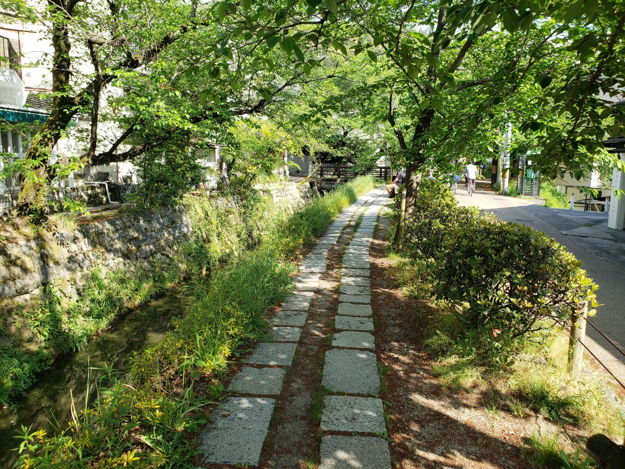 京大の哲学者である西田幾多郎が愛したことからも哲学の道と称されてきた。よく手入れされていて、確かに考え事をするときには良さそうな散歩道。小川に沿って道が作られているので涼を感じる。派手さはないけども銀閣寺と並んで通好みの場所かもしれない。