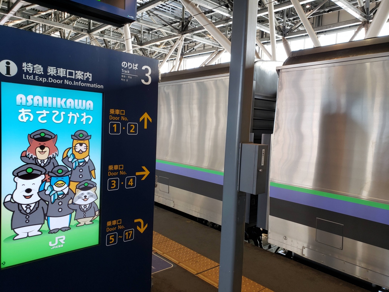 札幌⇔旭川を結ぶ特急電車。120キロ強の距離を1時間半弱で駆け抜けます。こちら往復券を買うよりはどうせなら、旭川動物園の入場券とのセットのチケットを買うのがおすすめ。6580円で特急の往復券と動物園までのバス券往復、動物園の入場券が付いてきます。
