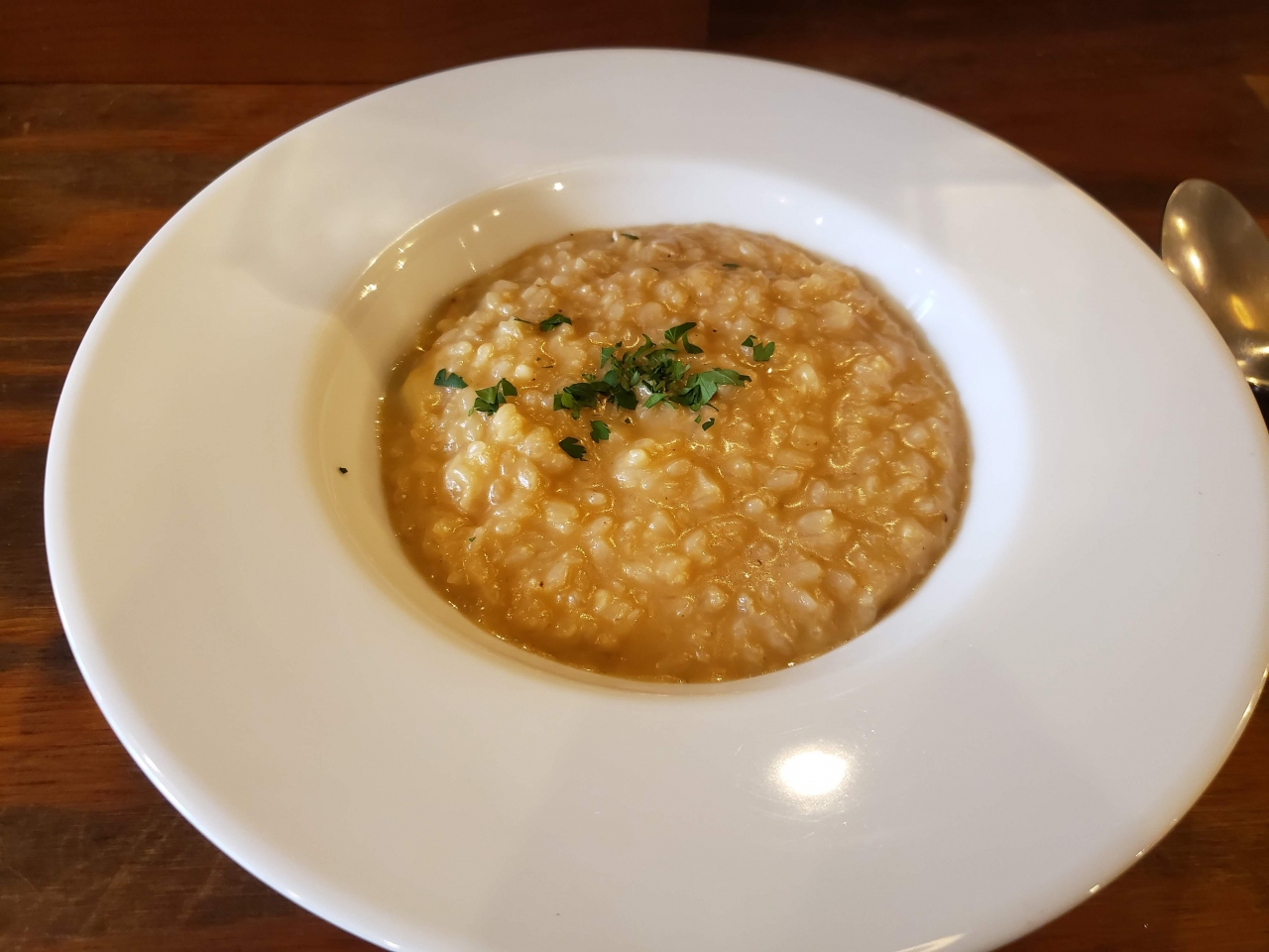 ランチで訪問。ランチセットは1200円前後で(広島にしては)価格が高い。牡蠣のリゾットをチョイスしたがこれは正解。ガチでおいしい。生牡蠣も1ピースでオーダーできます。さすがにこちらもおいしいですが600円前後とお値段高めです。