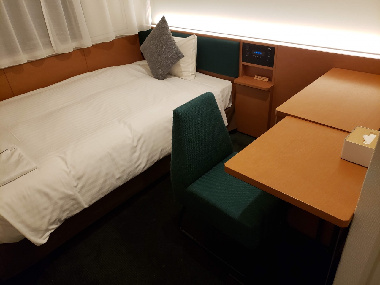 1泊5千円にて一休で予約。2千円割引クーポン適用し、さらにTポイント10倍となるので実質2千七百円という安さ。朝食付きなのでかなりのコスパの良さ。ビジネスホテルの定石のような間取りだが、寝るだけなので問題なし。築浅でお部屋はきれいです。最寄り駅は淡路町でたまたま銀座に用があったので便利だった。立地がよく、おすすめですよ。