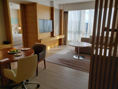 何度目かの宿泊。マリオット系列ホテルでは以前はアロフトに泊まることが多かったが、立地がどうもアレなので、鞍替えをしている。今回は1泊諭吉一枚弱ぐらい。会員特典でデラックスルームにアップグレードされた。2面採光の光あふれるお部屋。値段はあまり変わらんがやはりアロフトと違ってエグゼクティブラウンジがあるのはビジネス利用には助かる。