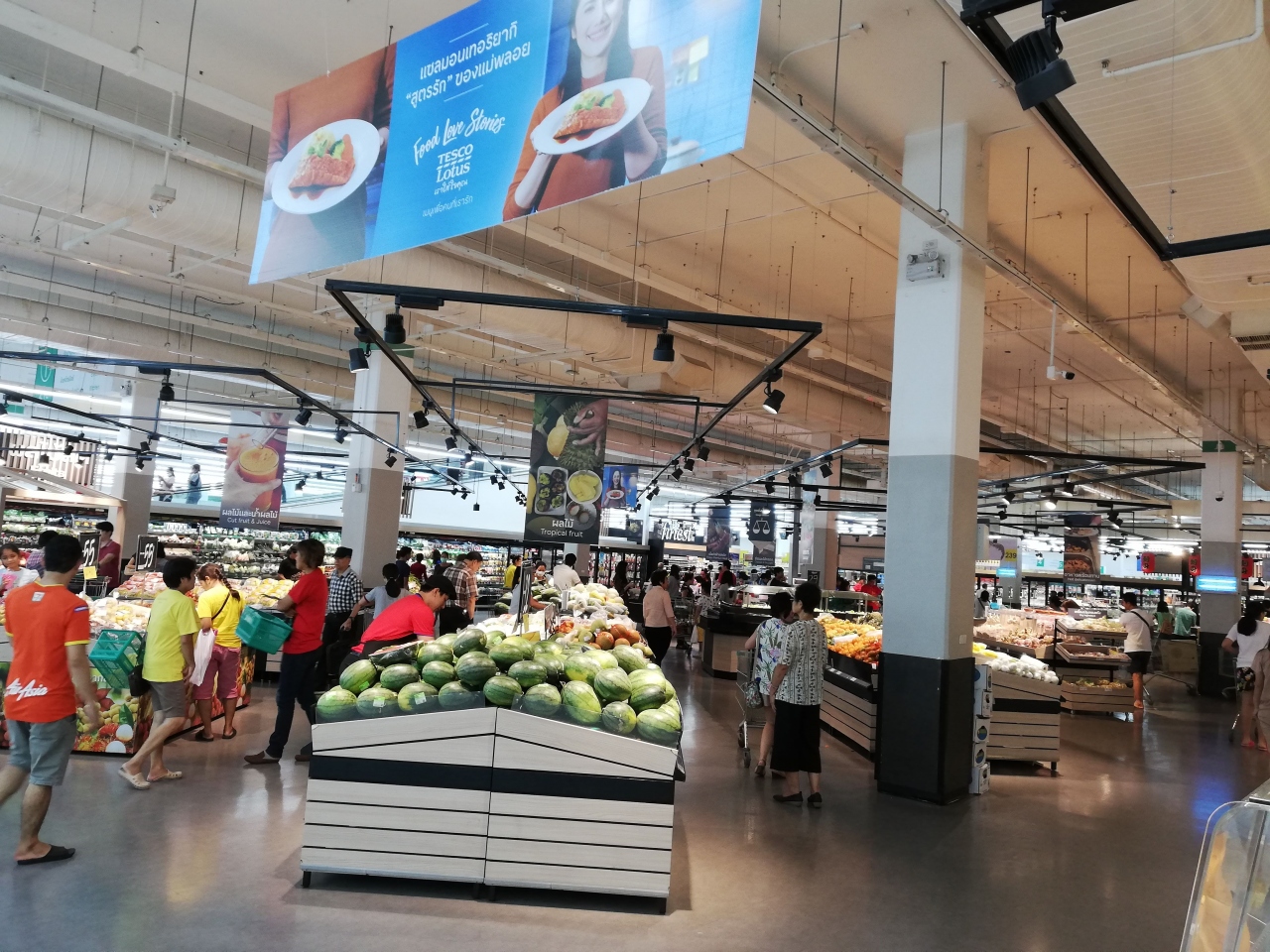 イギリスの大手スーパーチェンのテスコがタイにも進出しています。全般的に街の中心地にはなく、どちらかというと地元民向けで場所の悪い郊外に出店している。タイ大手のTOPSとは正反対の位置づけ。なので観光客はほとんどみなかった。お値段安いが、やはりたくさん買ってお得になるといった感じなので、外人としては使い勝手はいまいちかな。いろいろ見れてウインドウショッピング的な楽しさはある。