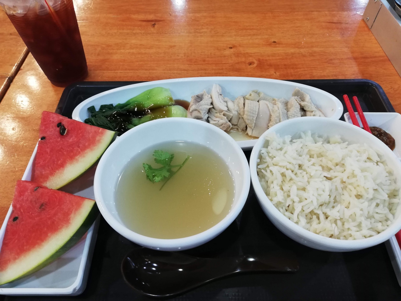アジアティーク内のカオマンガイの店。カオマンガイのセットメニューで129バーツと、屋台よりちょっと割高だが、デザートもつくし、量もあるのでまあリーズナブルではある。グーグルでの評価は低いが、私は十分満足できました!!