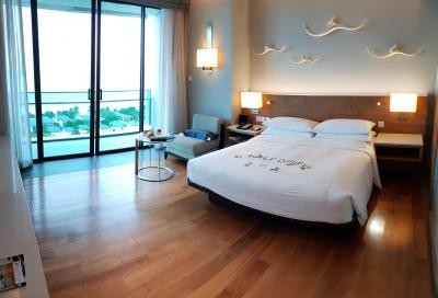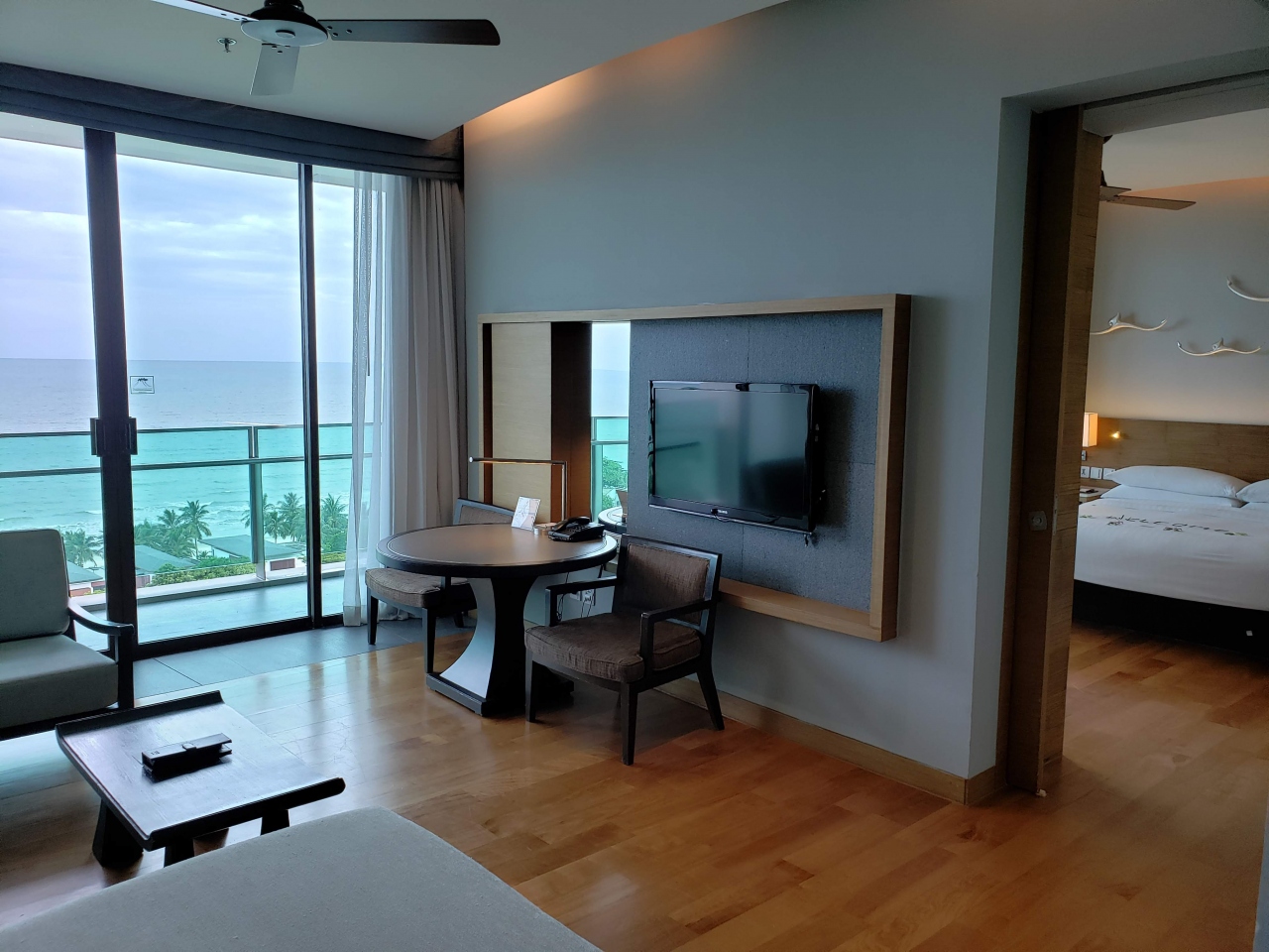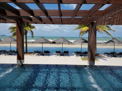 1泊込々3600バーツにて宿泊。バンコクからはるばるバス→ソンテウと乗り継いでの移動。およそ5時間かかった。そんなへき地にあるホテルだが、土地が安いだけに広大な敷地があり、自然たっぷりの景観でセロトニンが大量に放出される。チタニウム会員でワンベットスイートにアップグレード。80平米と無駄に広い。クローゼットも無駄に広い。木目調で統一され、シーリングファンがいい味を出している良い部屋です。バルコニーからの景観も素晴らしい。朝食は普通だが、フルーツドリンクが良かった。ラウンジはないが、レストラン、バーはそんなに高くないので許容範囲か。(プラチナメンバーは20オフなので)プールは広大で泳ぎが気持ちいい。浜辺の近くのプールの開放感は格別。