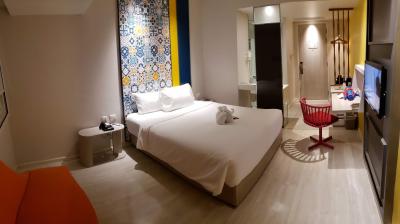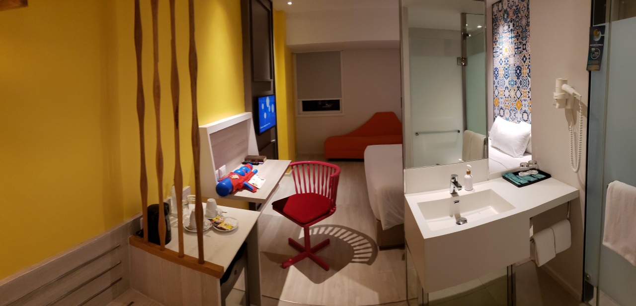 ソンクラン中の土曜日だというのに1泊1200バーツで朝食付きという非常にお安い値段で宿泊。アコーゴールド会員で特に部屋のアップグレードはないが、ウエルカムドリンクバウチャーはもらえる。カクテルも飲めるのは良かった。アコー系ではイビスホテルは味気ないが、イビススタイルズは全体的にオシャレなので安っぽさを感じす、やっぱいいよな~、まだ築浅でキレイです。