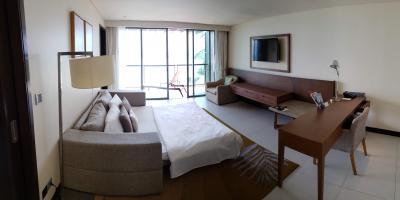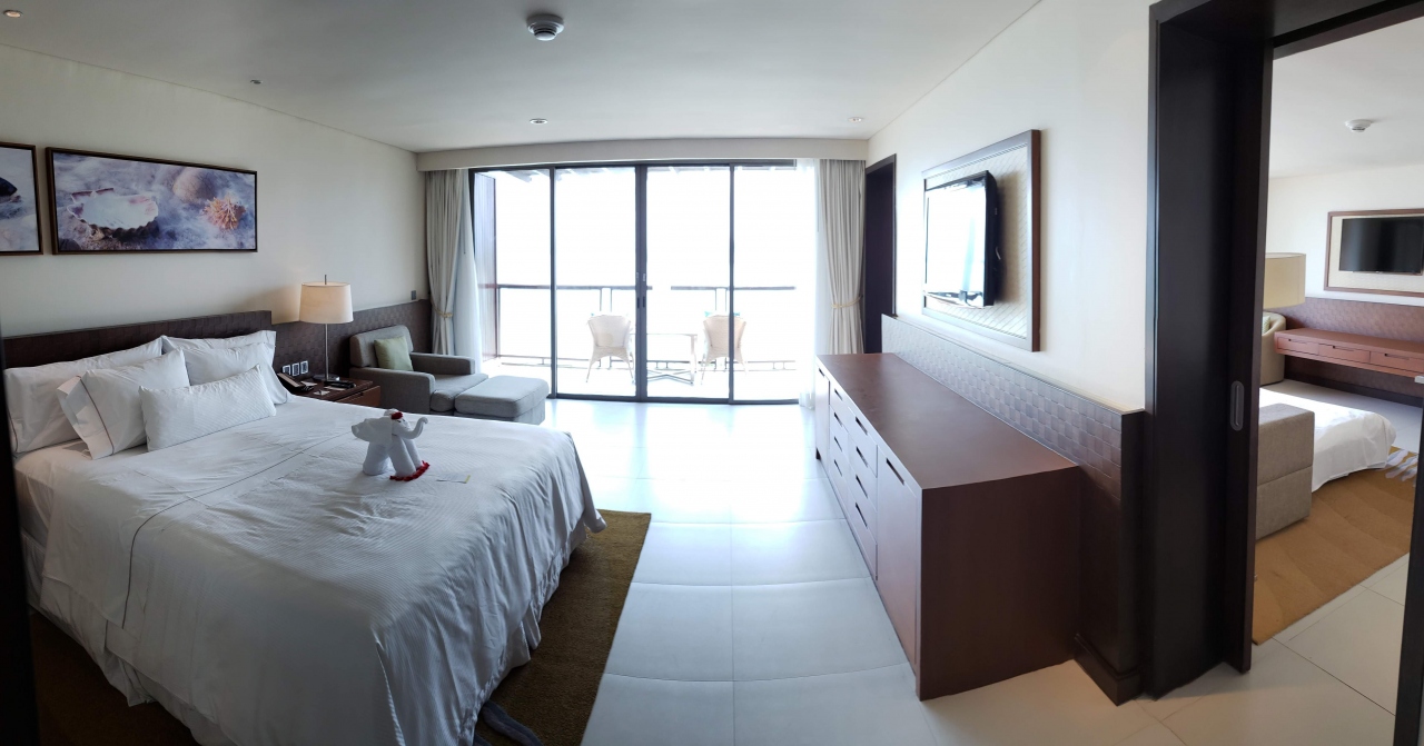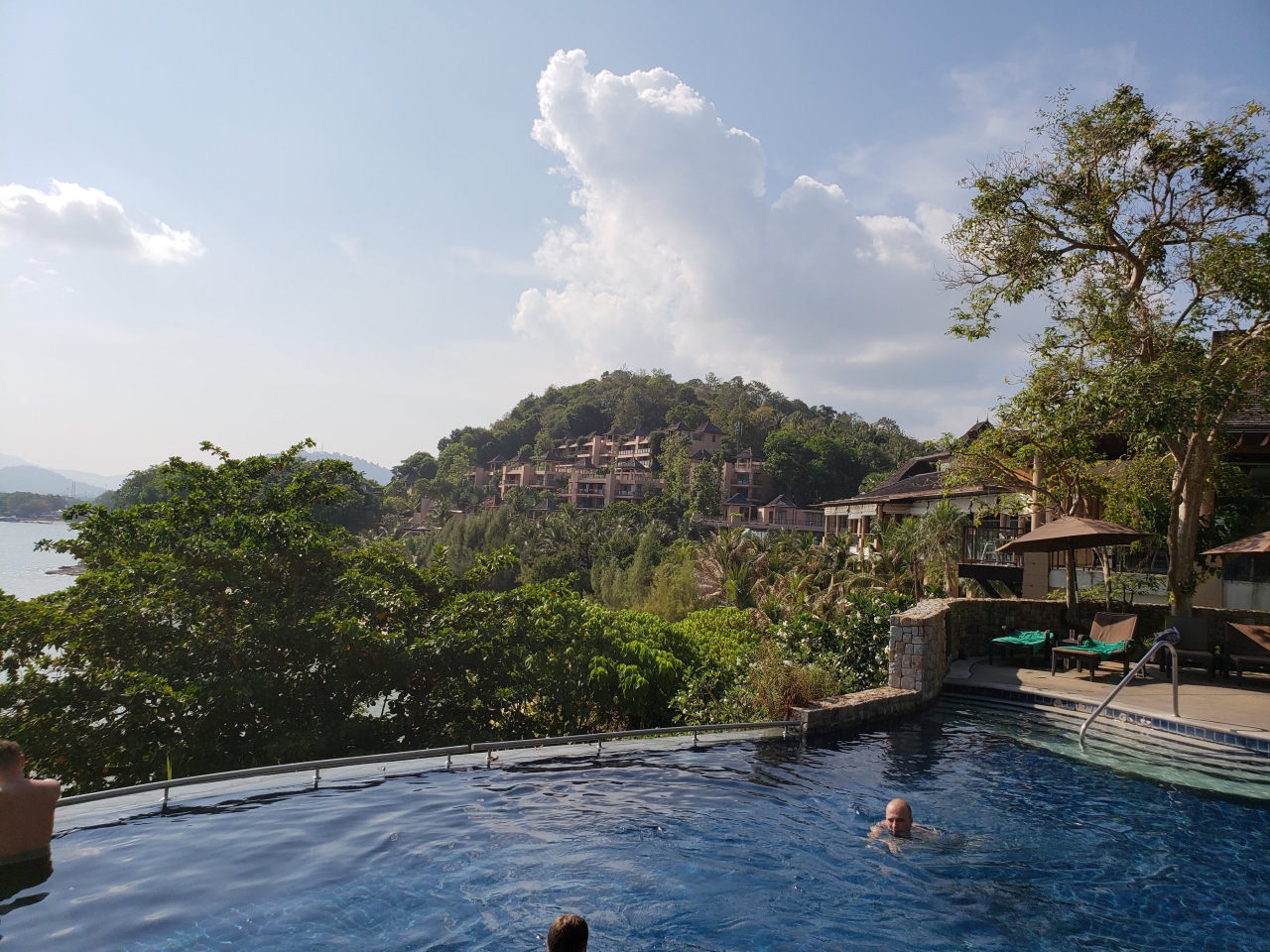 ソンクラン真っただ中だが、1泊4000バーツほどで宿泊。最下位からデラックス シービュー1ベッドルームスイートへアップグレード。60平米ほどのお部屋。チタン会員特典で朝食も無料にしてもらえました。急斜面に建てられたホテルなので眺めは非常に良いです。プールは三つありますが、混むのは東側下部のHorizonプール。夕日も非常にきれいで見ごたえがありました。エネルギッシュに観光したい人には不向きだが、ホテルにこもってまったりしたい人向けのホテルではある。価格からするとコスパは非常に良い。