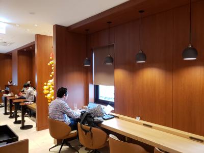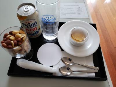 松山空港小さいですが、ちゃんとサクララウンジがあるのはうれしい。しかもスナックは3種類+地方の饅頭があり、愛媛のポンジュースまである。もちろんビールサーバーも健在。狭いラウンジですが、国内のサクララウンジの中ではつまみが一番充実している。