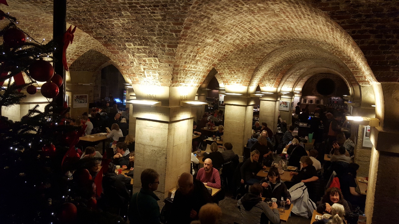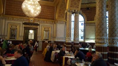 ナショナルギャラリーの隣にある教会の地下1階にある、古色蒼然たる雰囲気のカフェ。ピラミッドの地下みたいなイメージ。観光客向きだが意外とリーズナブルで使える。セルフ方式のフードもサーブしており、ランチ、ディナーでも使える。歩き疲れたら一度は行ってみてもいいかもしれない。