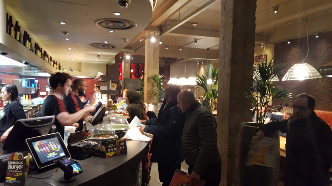 ここのところロンドンで人気を博しているファーストフード店。店舗数を伸ばしてきている。どこの店舗も繁盛している印象。チキンを使ったスパイシーな料理が特徴。クラッシックとサイドメニューのセットで8.5ポンドだった。テイクアウトにしたらやたらと時間がかかったけど、病みつきになるおいしさだった。辛さは調節できる。
