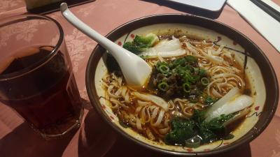 ちょいと地味目でローカルな雰囲気の中華レストランだが、これが意外に良かった件。四川風ラーメンを汁ありで食すがこれがややピリ辛でうまかった。ついでに汁も飲み干してしまった。日本にあっても十分に通用するのではないか。8.5ポンド也。