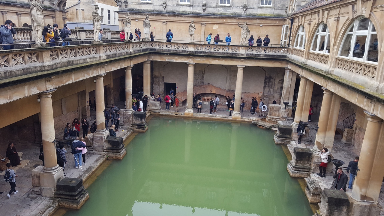 バース観光の目玉ともいうべき博物館。値上がりした16.5ポンドの入場料は高いが、しっかり勉強すれば元は取れると思う。現存する建物は1890年ごろのものなので全然新しいが、下の地層からはローマ時代の遺跡や遺物が発掘されて展示されている。それらをオーディオを聞きながら一つ一つ丁寧に追うのだが、碑文などの記録で残っていることも多いためディテールを極める。西欧の歴史の深さは改めてスゲーと思う次第。
