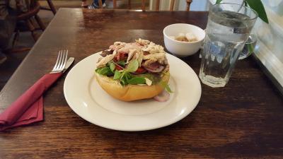 えてして観光名所の近くにある有名なレストランはおいしくないことが多いけど、こちらは数少ない例外ではないかと思う。2時前に行ったが数名の行列ができていたが数分で案内された。1600年代にフランス人の女の子が考案したパンが郷土料理になっており、目玉。実際シンプルな料理だけどとっても美味しかった。素材が良いのかしら~