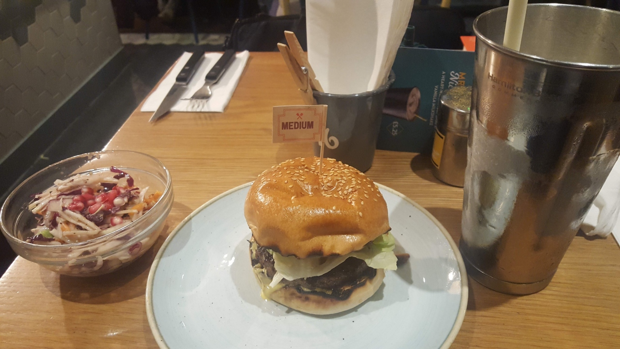アットホームな雰囲気のバーガー屋さん。結構混雑していたので気になって入ってみた。日本みたいにオーダーフォームに記入して注文するやり方。UKでは珍しいと思う。コールスローサラダ見ない奴はちょっと微妙やったけど全体的に味はまあまあか。