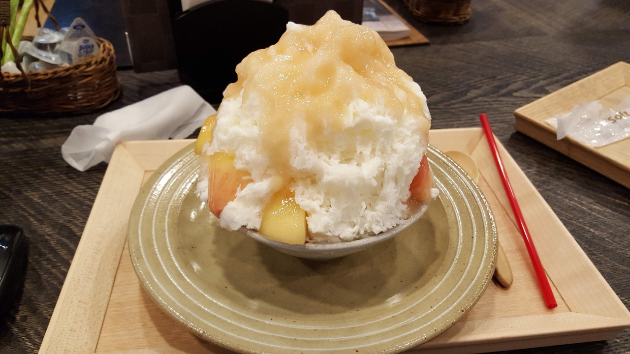 藤田記念館の館内にある軽食処。暑くはなかったですが、とても美味しそうなかき氷の誘われて入店。季節によって旬のフルーツのシロップを使っているみたいですが、9月上旬に訪問した時は白桃でした。練乳も程よく甘く、フカフカの氷でおいしかったです。