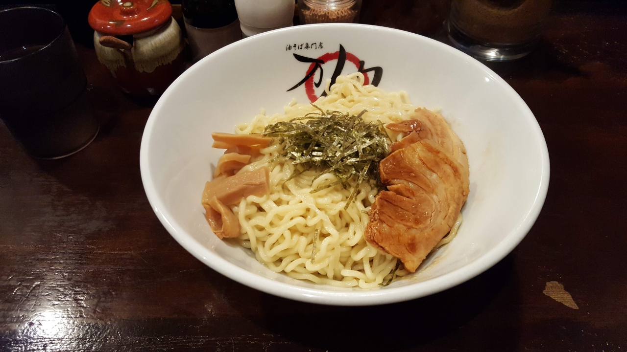 日比谷線入谷駅徒歩5分のラーメン屋、グーグルでの評価が案外いいので入店。お客さんの入りはまずまずといったところ。さてこちらは汁なしの油そばのお店で、好き嫌いははっきりするかもしれません。個人的には??な感じではありました。大盛りを選べば麺の量は結構あります。