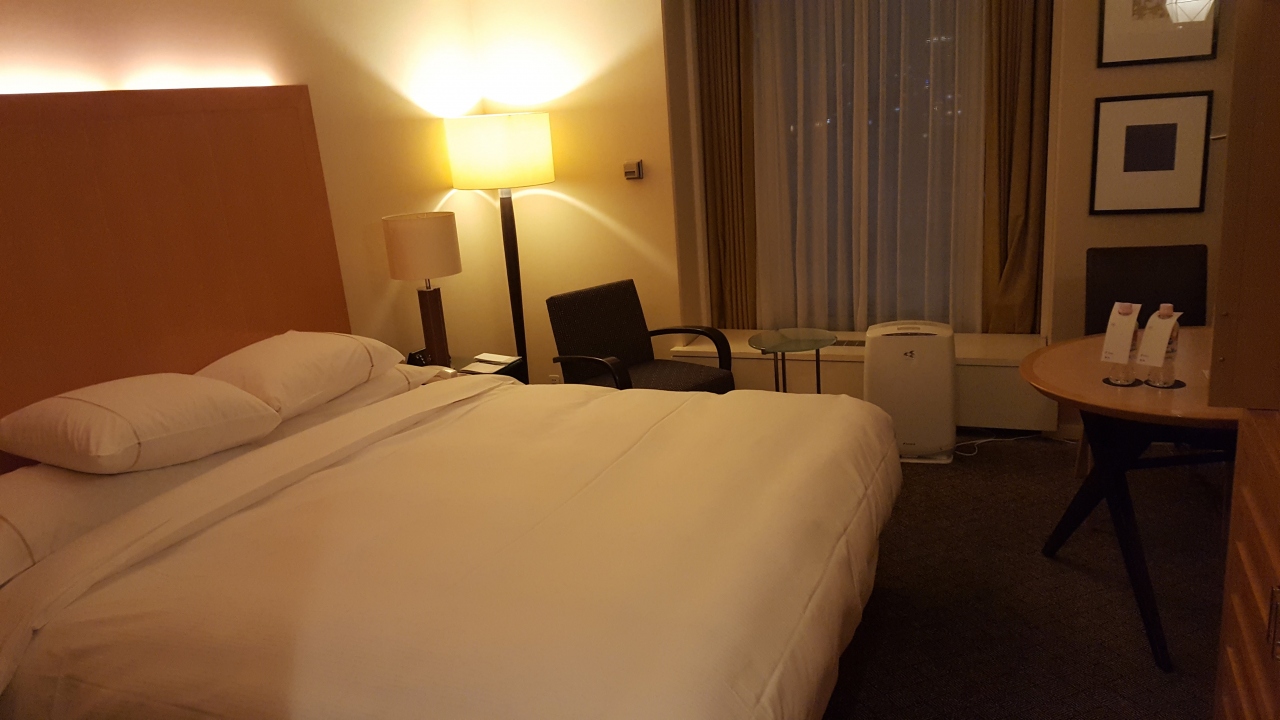 年始にもかかわらず1泊10450円というかなりの好レートで宿泊。SPGプラチナでプレミアムシングル(18平米)→プレミアムダブル(23平米)へアップグレード。老朽化しているが、悪くないお部屋。目黒のシェラトン都と間取りが似ていて、高級ビジネスホテルといった感じ。ラウンジとプールも利用させてもらった。特にプールは25Mが6レーンあって広々していてよい。東京ではありえんよなあ。金額からすると元は十分とったなあ、という滞在だった。
