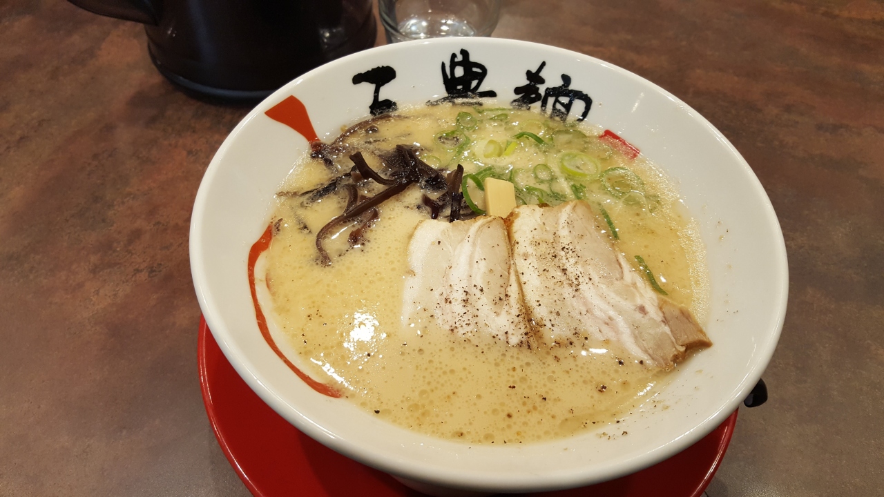 宿泊していたシェラトン都ホテルから近かったので、試しに行ってみた。どうやらチェーン店らしきラーメン。たぶん魚介系つけ麺を押しているようだったが、当方それほどおなかが減っていないため、とんこつラーメンをチョイス。特に可もなく不可もなく無難なラーメンでした。