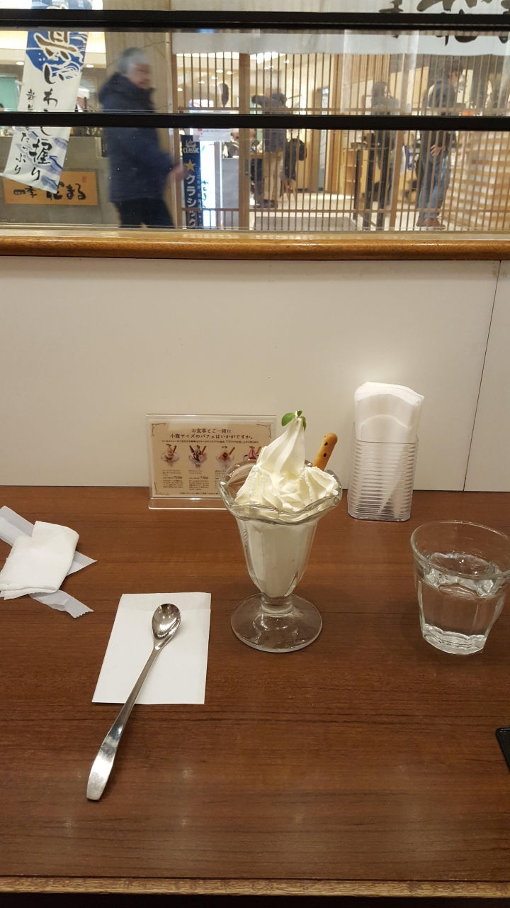 乳製品メーカーの「よつ葉」が経営するカフェの店。金曜日20時ぐらいに来店しましたが、少し列ができていました。スタンダードなミルクだけのパフェをオーダーしました。スモールでも700円弱します。結構なボリュームがあるのでSで十分です。