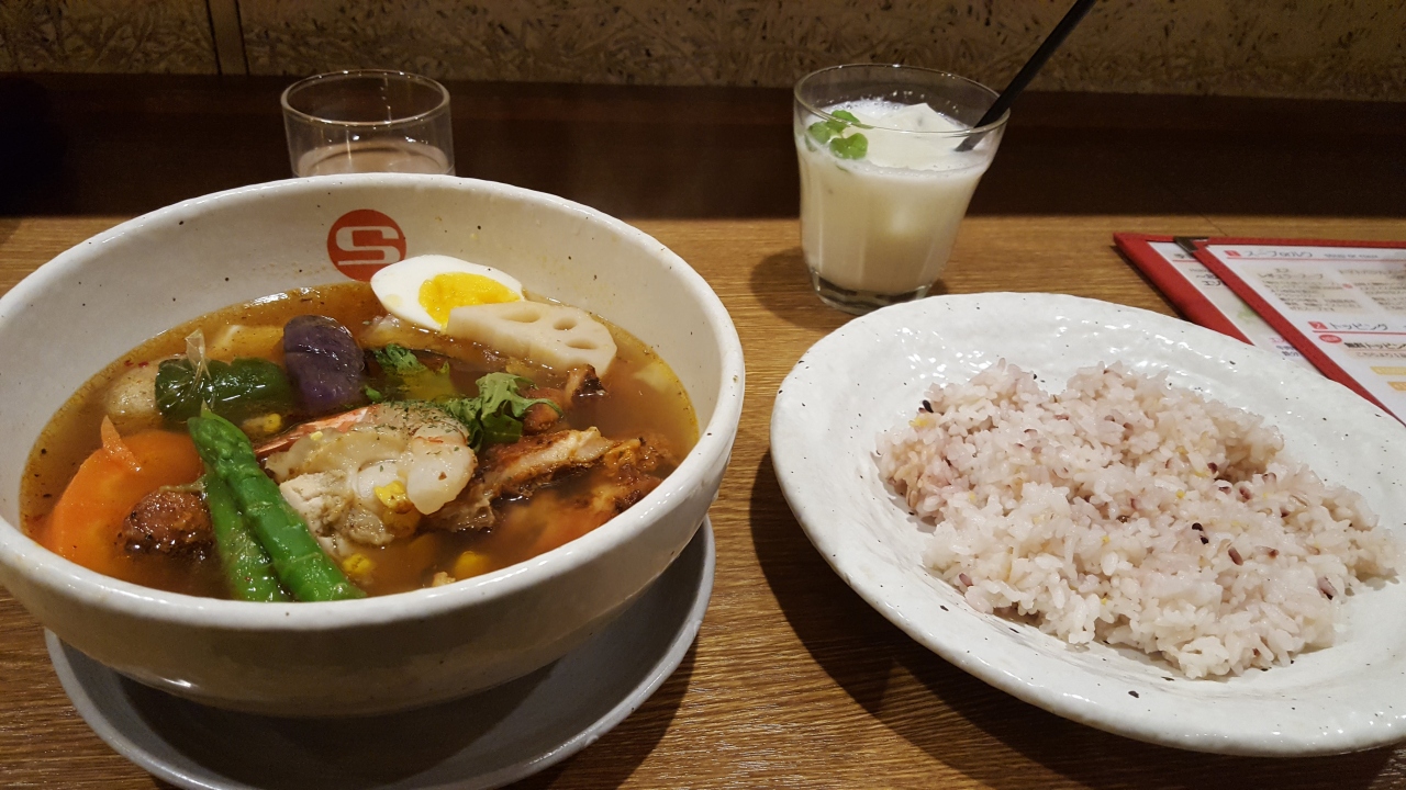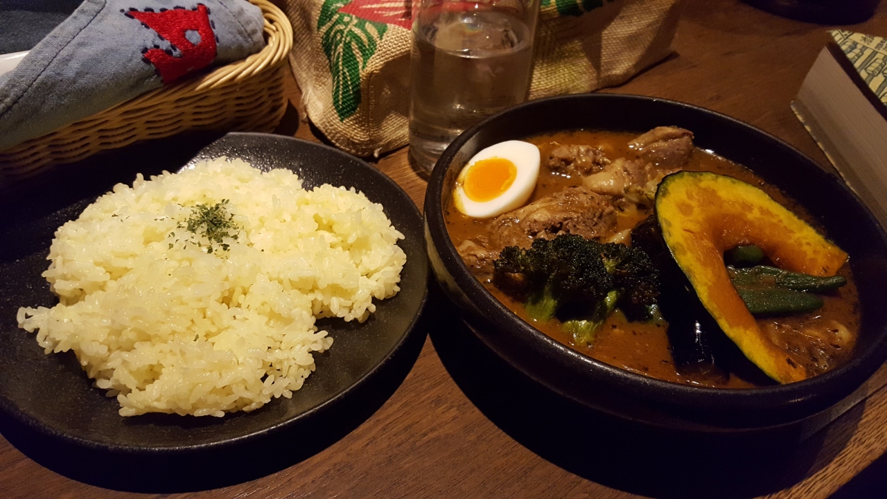 すすきの駅近くのスープカレー屋さん。大通りに面しているので比較的目に付きやすい店舗。こちらのカレー屋さんの特徴はスープが薄めであること。女性向きですね。るるぶのクーポンもっていったらラッシーを無料でもらえました。