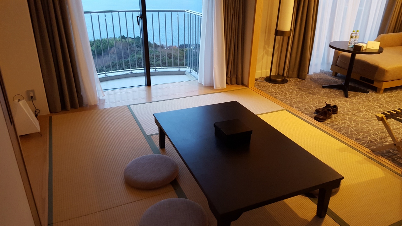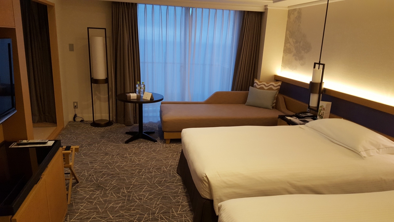 ヒルトンフラッシュセール(50%オフ)で1万2千円強で宿泊。ダイヤモンド会員で最底辺より一気に和洋デラックスルームへ。リフォームしたてのぴかぴかのお部屋です。眺めも素晴らしくいうことない!!普通に宿泊したら3万円以上します。朝飯付き、かつオーシャンラウンジへのアクセス、イブニングカクテルの利用と至れりつくせり。温泉(露天もあり)も相変わらずよい。かくも素晴らしいホテルライフ。