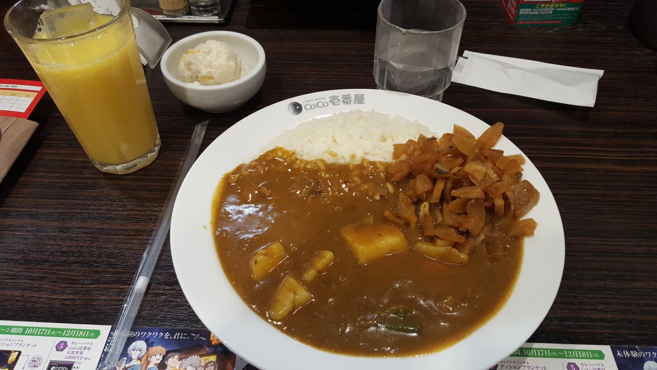 西武線江古田駅近くのココイチ。漫画がたくさんあって暇つぶしにもなるいいお店。学生街らしい配慮が聞いています。味も安定している。今ならJALの搭乗券のチケットでドリンク券や、サイドメニュー一皿無料とできてお得。