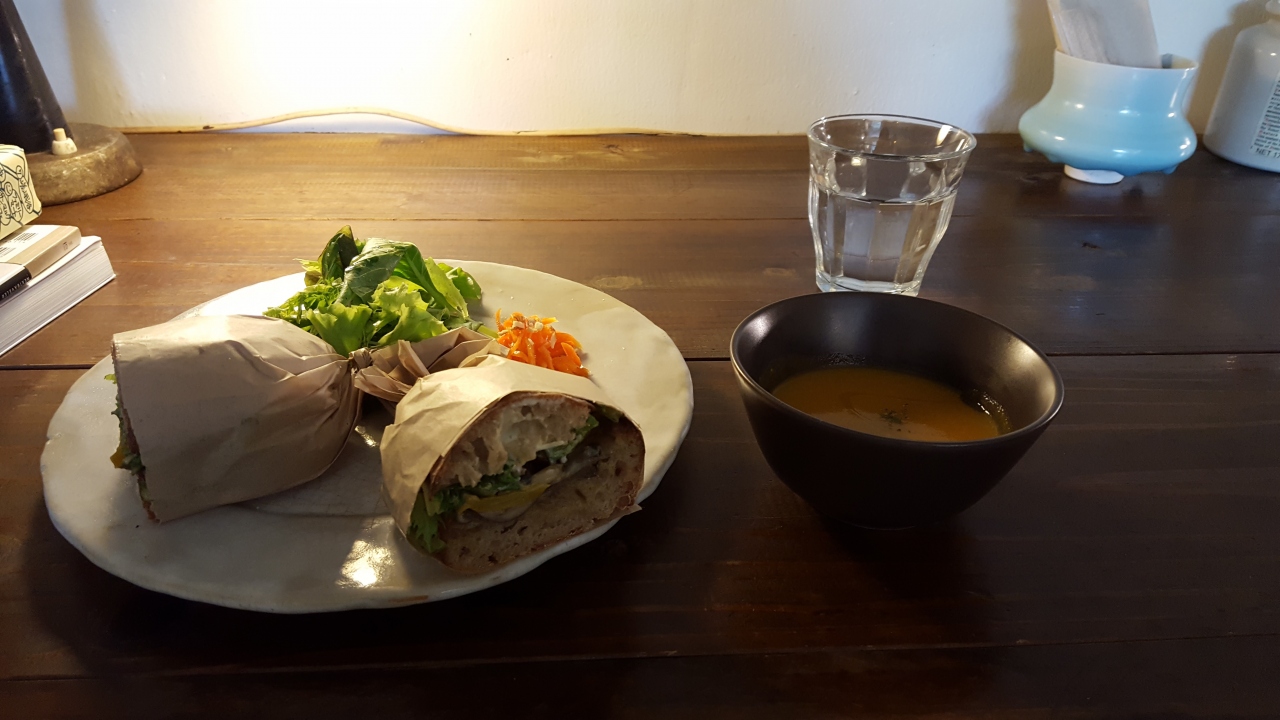 中城跡近くにある有名なパン屋さん。朝食とランチやっています。山の中腹にあって、空気がおいしい、緑に囲まれて気持ちがいい中で食べるごはんはおいしいです。ランチセットでパンにサラダ、スープがつく。どれも絶品でした。いやー何度も通いたくなるな~。沖縄いいぞ!
