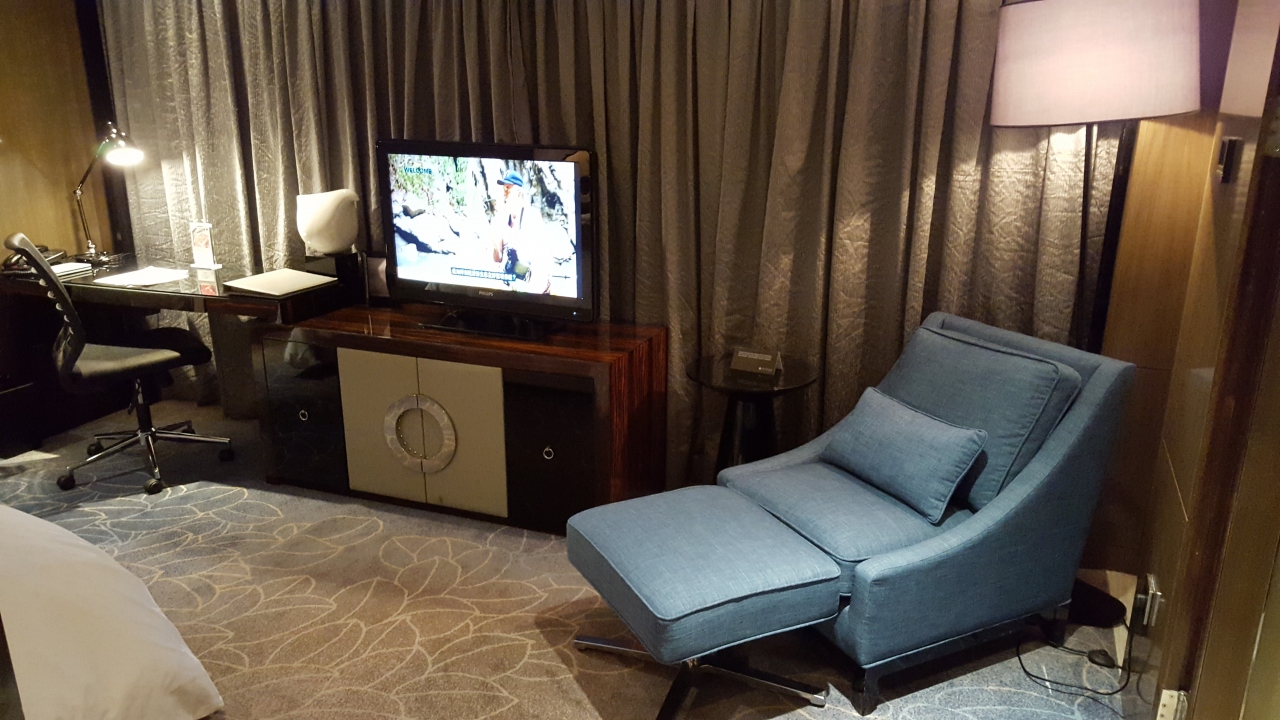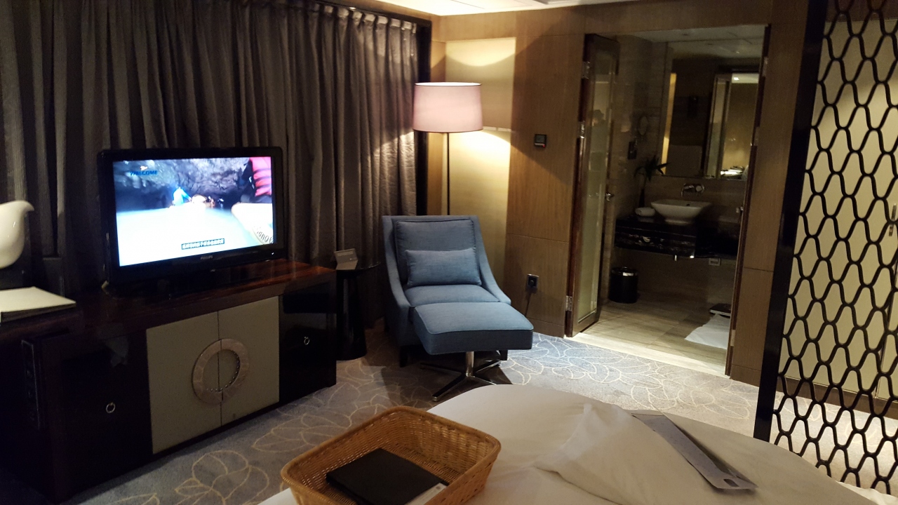 1泊込み込みで16000円ほどで宿泊しました。SPGプラチナの恩恵で45階のクラブフロアへアサインされました。前日にW上海へ泊まっていたせいか、大きく見劣りする感が否めなかった・・やはり36平米では狭いし、なによりくたびれている感じが強い。眺めは圧巻。めまいがする思い。当ホテルの良い点はラウンジサービスの良さに尽きるラウンジ嬢は気が利くし、飯も外食の必要がないほどに充実している。全体的に惜しいホテル。ジュニアスイートにアサインされていれば印象も変わるか。。